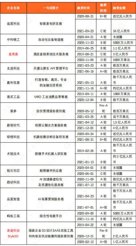 表:順為資本2019-2021年間參與多輪融資的主要數字科技企業