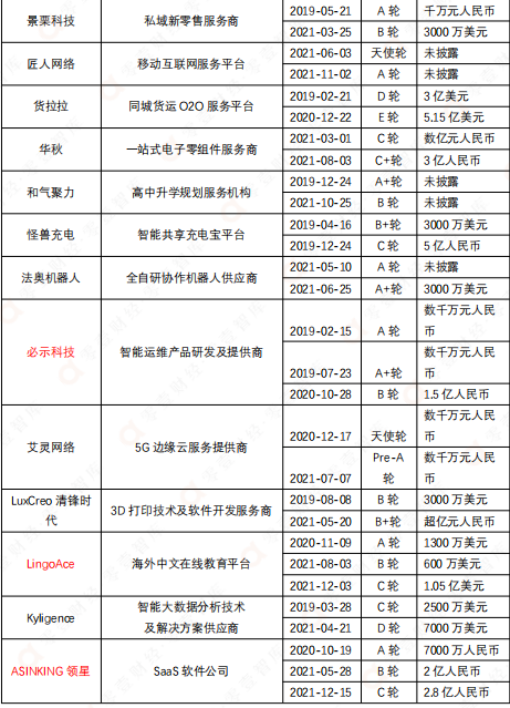 表:順為資本2019-2021年參與融資規模最大的十大數字科技企業