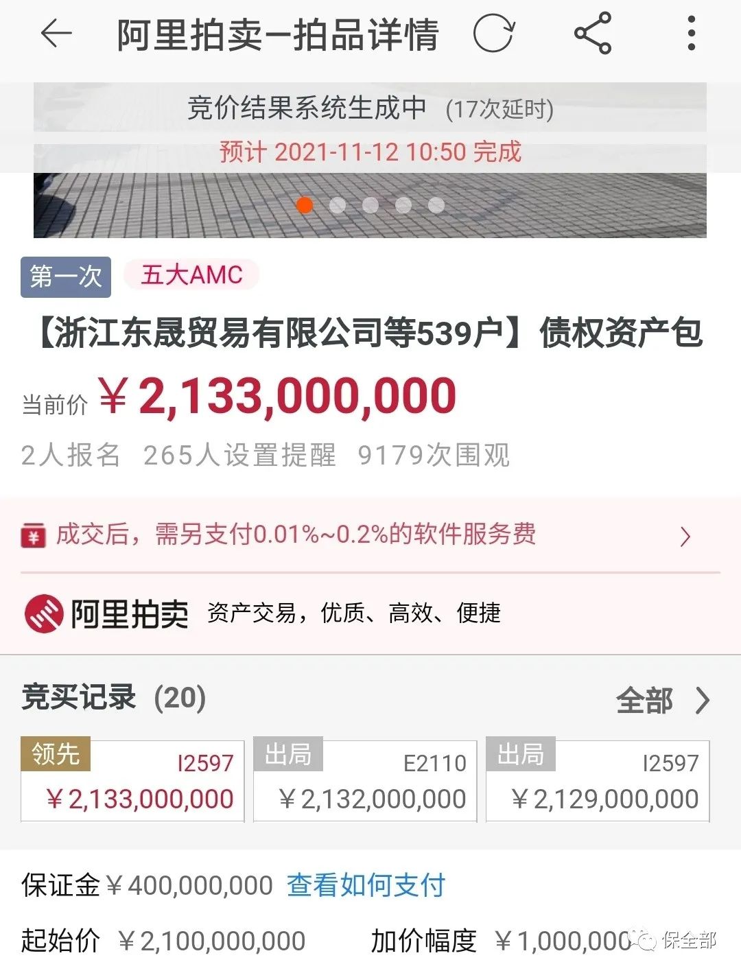 中國(guó)信達(dá)浙江省分公司在阿里拍賣平臺(tái)掛拍的本息金額合計(jì)204億元的不良資產(chǎn)包溢價(jià)成交,成交價(jià)21.33億元,成為網(wǎng)拍成交的最大金額資產(chǎn)包。
