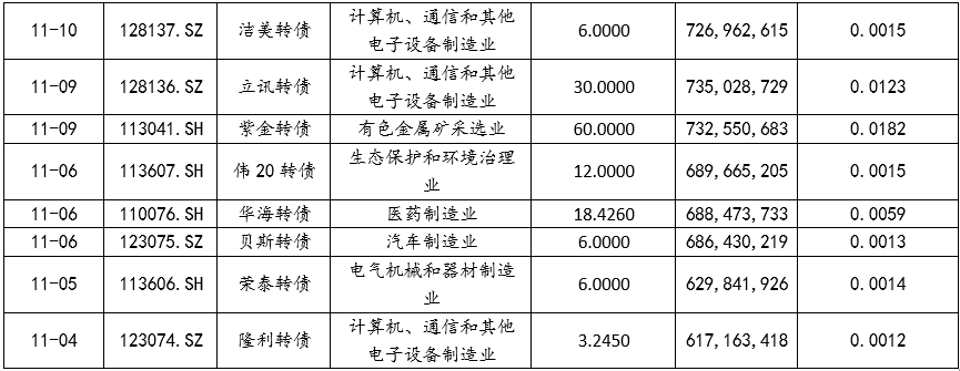 2020年11月可轉債共上市發(fā)行15只,發(fā)行金額237.77億元,月環(huán)減少89.43億元;8家主體到期,償還金額0.79億元;凈融資額 235.98億元。
