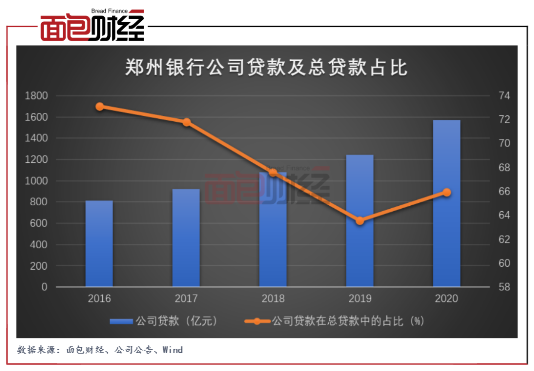 年報顯示,鄭州銀行的公司貸款主要圍繞“商貿(mào)金融、小微金融、市民金融”三大特色業(yè)務,截至2020年末,該行公司貸款總額為1569.54億元,占該行貸款總額的65.96%,較上年末增加人民幣323.88億元,增幅為26%。