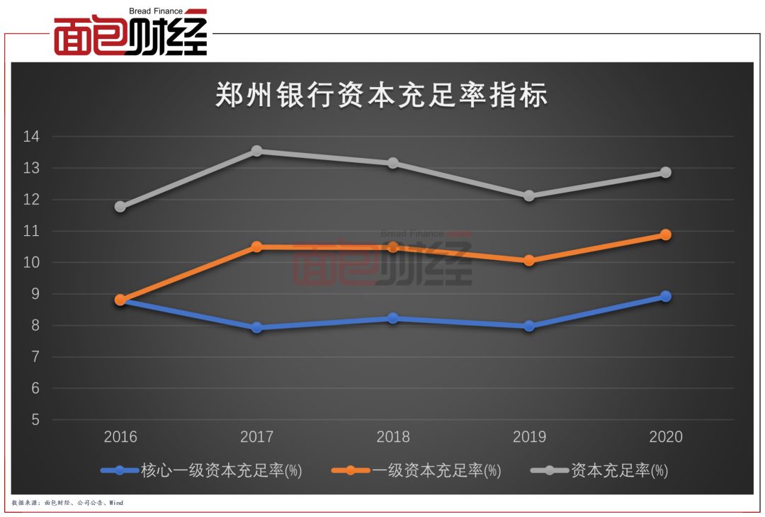 鄭州銀行的各項資本充足率指標在2020年均有提升。截至2020年末,該行的資本充足率為12.86%,較上年末提升0.75個百分點;一級資本充足率為10.87%,較上年末提升0.82個百分點;核心一級資本充足率為8.92%,較上年末提升0.94個百分點。