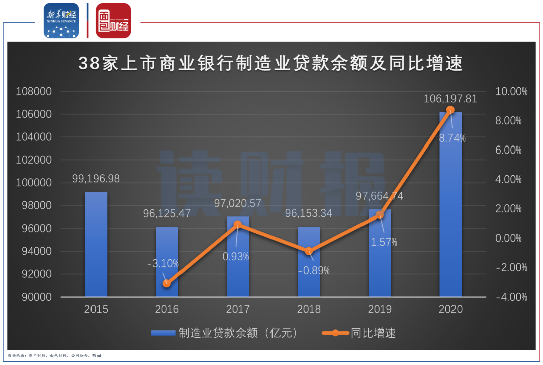 截至2020年末,38家上市銀行制造業(yè)貸款余額達10.62萬億元,較上年末增加8533.08億元。