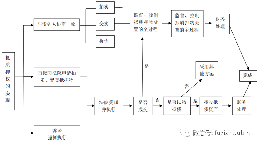 處置抵押物是在債權債務屆滿時,因債務人原因導致債權人債權并未實現,債權人債務人通過協商或向法院等司法機構申請,借助司法途徑對抵押物進行變現,并將變現所得優先用于清償債權人債務。其基本流程如下圖: