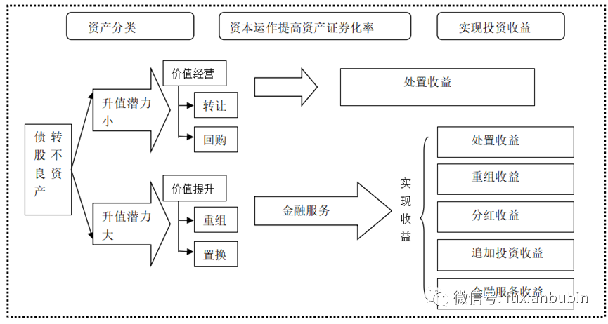 債轉股即通過以股抵債等方式獲得企業不良資產,隨后通過改善企業經營模式逐步提升企業資產價值,最終通過資產置換、并購、重組和上市方式等退出,實現債轉股資產增值。其基本模式如下: