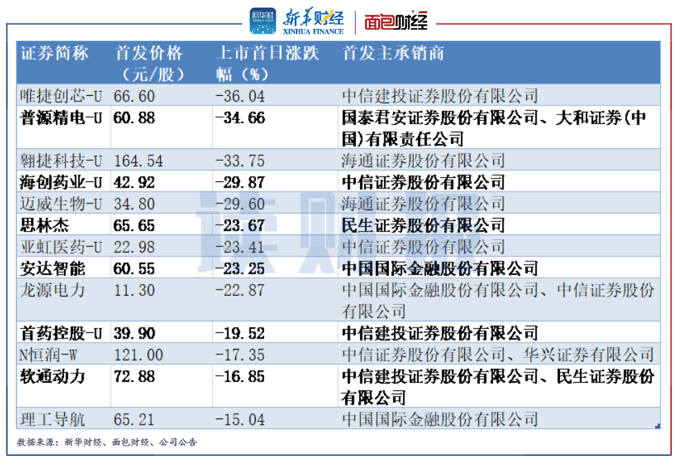 中信、中金主承銷的新股破發數量居前