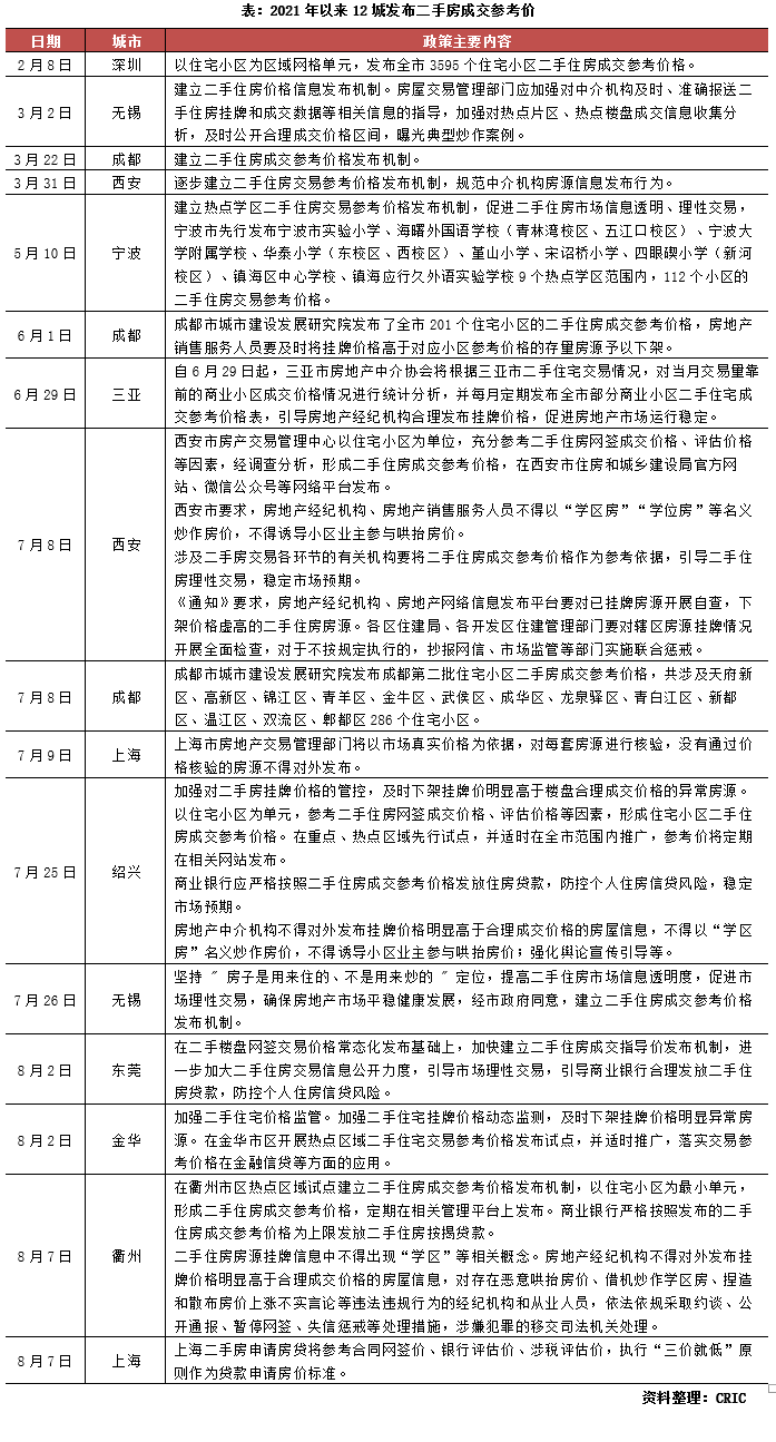 據不完全統計顯示,自2月8日深圳率先發布二手住房成交參考價格以來,截至目前已有無錫、成都、西安等12個城市相繼建立二手房成交參考價格,以期維穩二手房市場,防止二手房價格異動上漲。