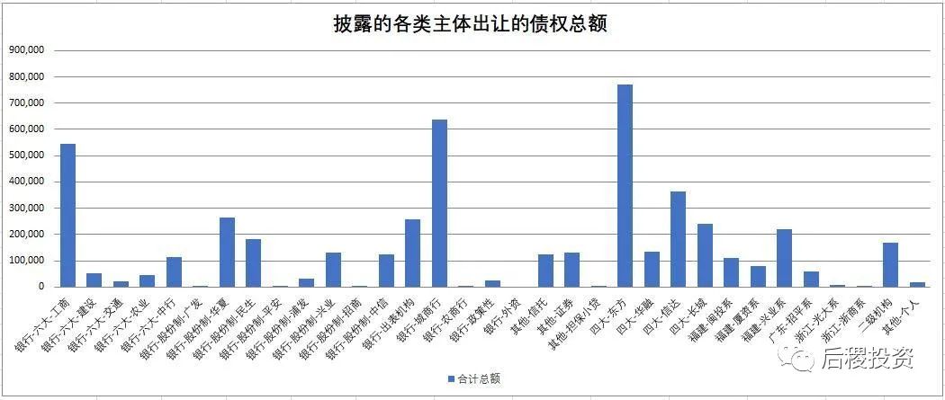 在我們搜集到的公開轉讓記錄中,未透露債權金額的共有36筆。其中大部分對成交情況判斷影響不大,但有關信達的成交記錄絕大部分均未透露債權金額,信達出讓的10次記錄全部未透露金額,而受讓的9次記錄也未透露,這造成了本文中信達債權成交額信息缺失,對總量和信達本身的情況判斷變得困難,在此提醒讀者注意。