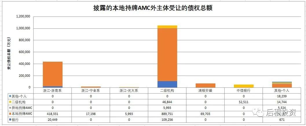 d、異地持牌AMC中,浙商的出讓規模較2018年為少,另外還出現了廣東招平和浙江光大的身影。