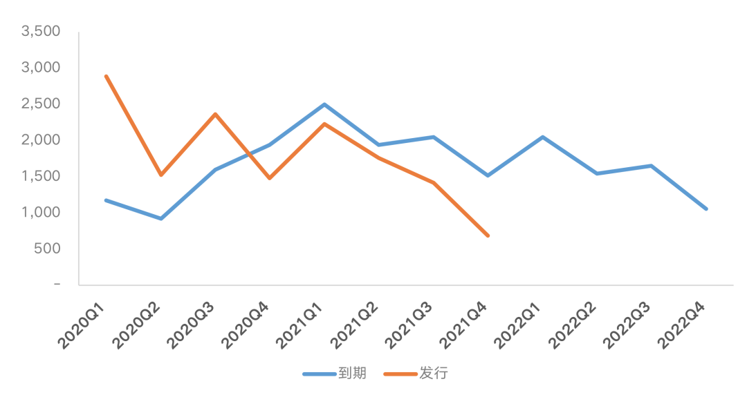 圖:房企2020年以來發(fā)債及到期債券情況(單位:億元)