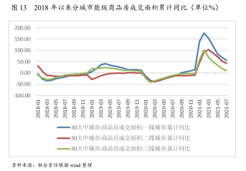 3.供需端——房地產銷售面積增速較快,區域分化明顯,預計未來需求將受調控升級影響受到壓制,加之銷售回款周期拉長,地產行業短期承壓