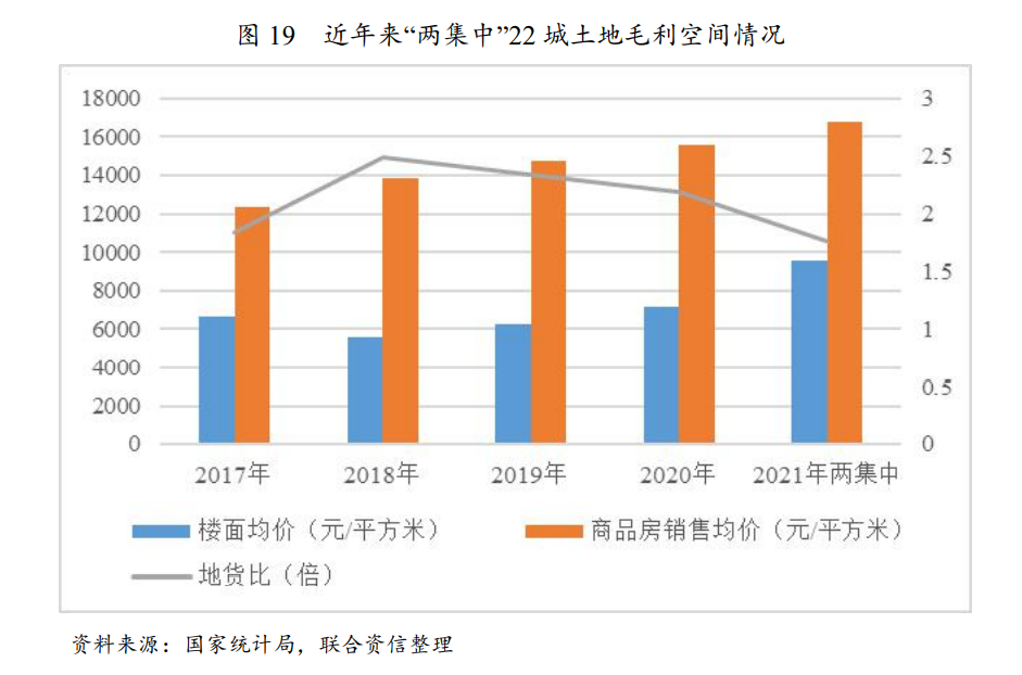 近年來,土地毛利空間持續壓縮,2021年首批供地新增拿地項目的平均盈利水平處于近年來新低,隨著第二次集中供地競拍規則的積極調整,行業盈利空間有望得到邊際修復。
