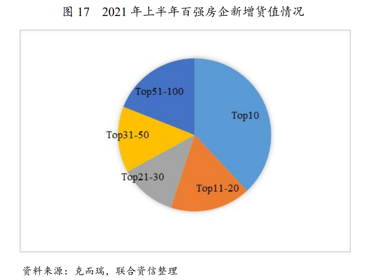 從上半年各梯隊百強房企新增貨值來看,TOP10房企新增貨值占百強房企的38%,TOP11~30占29%,短期來看,強者恒強的趨勢并未改變,在首批集中供地影響下投資集中度將進一步提升,馬太效應凸顯,行業洗牌與分化加劇。