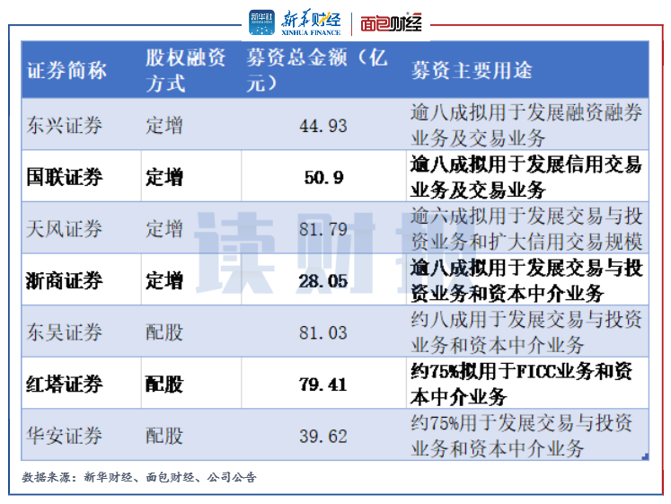 在當前以凈資本為核心的風險監控與預警制度下,券商的凈資本規模成為反映其風控能力的重要指標之一。此外,傳統經濟業務同質化嚴重且傭金率下滑,也促使各大券商向資本中介、投資業務等資本消耗型業務轉型發展。2021年,多家上市券商通過定增和配股的股權融資方式“補血”。