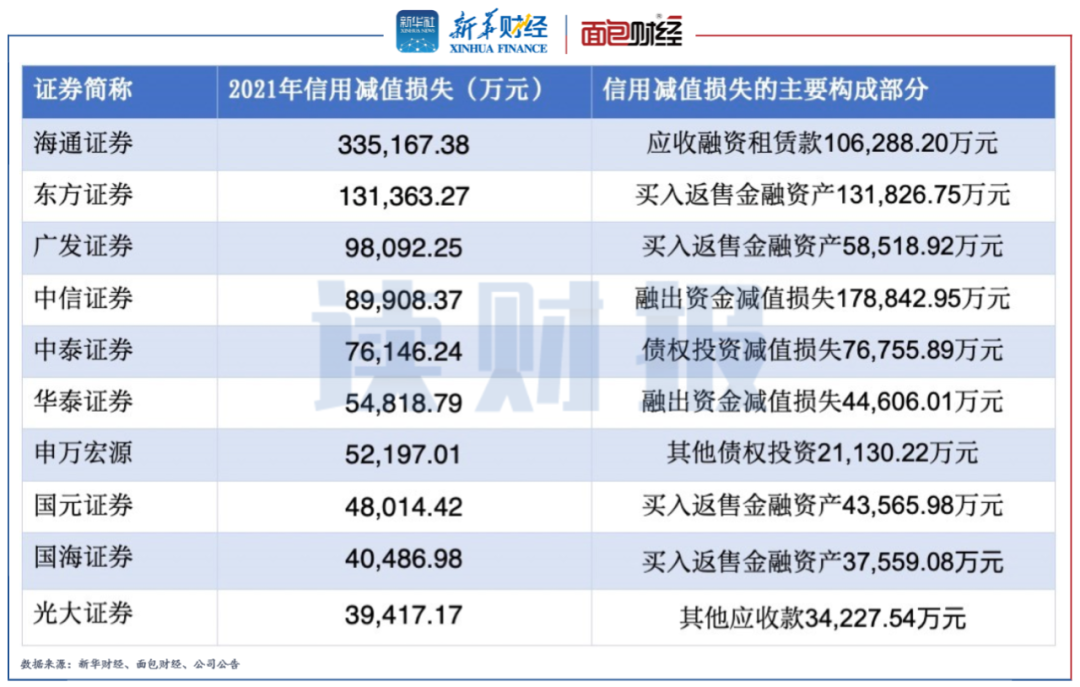 此外,海通證券、東方證券確認了超10億元的較大金額信用減值損失,主要源自應收融資租賃款和買入返售金融資產。