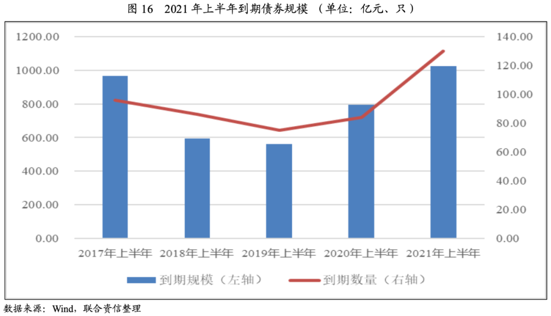 2021年上半年,化工行業(yè)債券到期規(guī)模為1024.40億元,同比增長28.92%;債券到期數(shù)量為130只,同比增長54.76%;主要系2020年新冠肺炎疫情爆發(fā),為盡快恢復(fù)經(jīng)濟(jì),國內(nèi)營造了階段性寬松的融資環(huán)境,化工行業(yè)發(fā)行的短期融資債券規(guī)模較大,上述部分短期融資債券在2021年上半年陸續(xù)到期。
