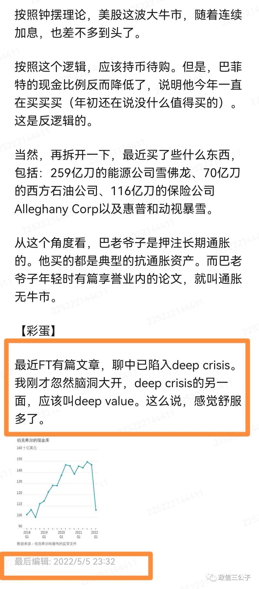 5月2號(hào)看完巴菲特和芒格的股東會(huì),當(dāng)晚寫了篇體會(huì)。剛才瞥了眼美股,已經(jīng)跌到慘不忍睹,預(yù)見性還是一流的。