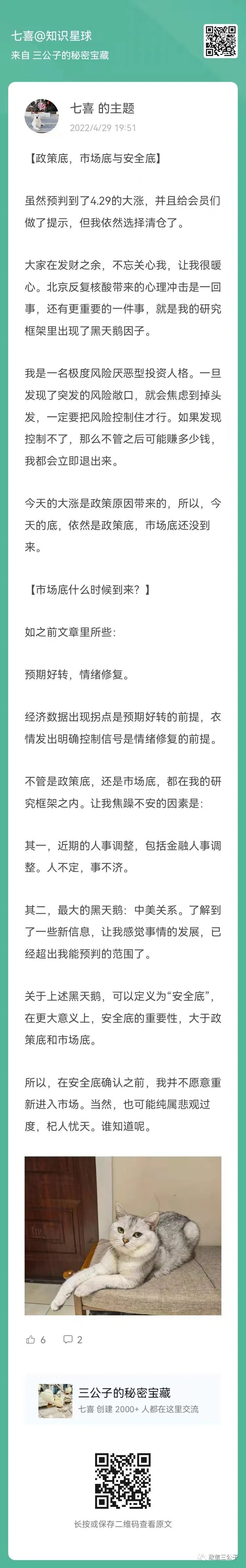 4月29號(hào)大漲,我卻完成了清倉,也在星球里陳述了判斷邏輯。當(dāng)然,也被嘲笑了。