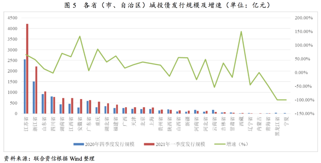 受2021年再融資需求擴大及市場情緒修復的影響,一季度城投債發行數量及規模大幅增長。