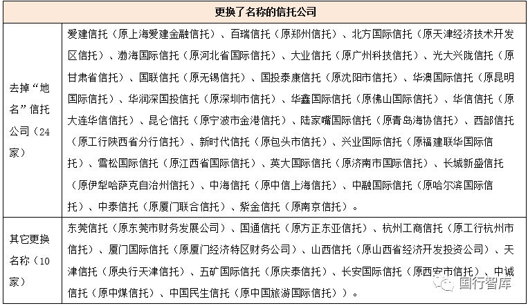 (二)名稱維度:今非昔比,50%信托公司更換了名稱(以去掉“地名”為主)