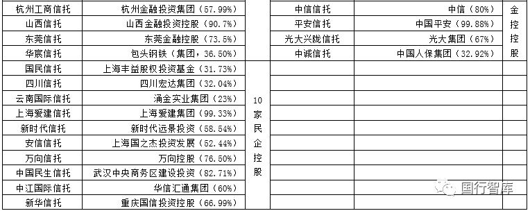 5、10家民企背景的信托公司分別為國民信托、四川信托、云南國際信托、愛建信托、新時(shí)代信托、安信信托、萬向信托、民生信托、中江國際信托、新華信托。