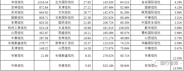4、當(dāng)然也有一些信托公司的業(yè)績出現(xiàn)了明顯改善,如中糧信托(同比481.06%)、國聯(lián)信托(360.93%)、新華信托(241.30%)、西藏信托(70.01%)、英大信托(66.66%)、國投泰康信托(63.77%)、國民信托(54.90%)、陸家嘴信托(45.98%)、長安信托(42.58%)、萬向信托(38.59%)等等。
