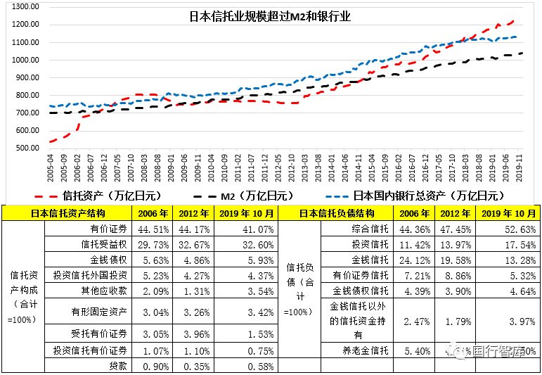 (一)國外情況簡(jiǎn)述:起于英美、成長于日本,日本信托資產(chǎn)超過190萬億人民幣(超過M2和銀行業(yè))