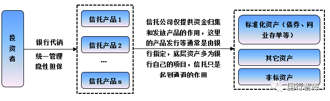 即信托公司在銀行的授意下發(fā)起設(shè)立不同期次、滾動(dòng)發(fā)行的信托產(chǎn)品,并由銀行負(fù)責(zé)代銷和統(tǒng)一管理,這實(shí)際上仍然是一個(gè)事務(wù)管理型。