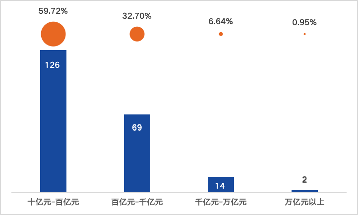 (三)近57%公司營收規模處在十億元到百億元之間