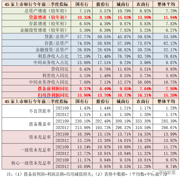 目前有45家上市銀行公布了今年前三季度經(jīng)營情況(包括國有大行6家、10家股份行、17家城商行以及12家農(nóng)商行)。