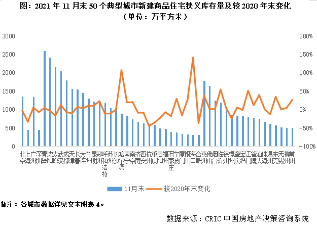 附表5:2021年11月末100個重點城市商品住宅廣義庫存量及其變動情況(單位:萬平方米)(略)