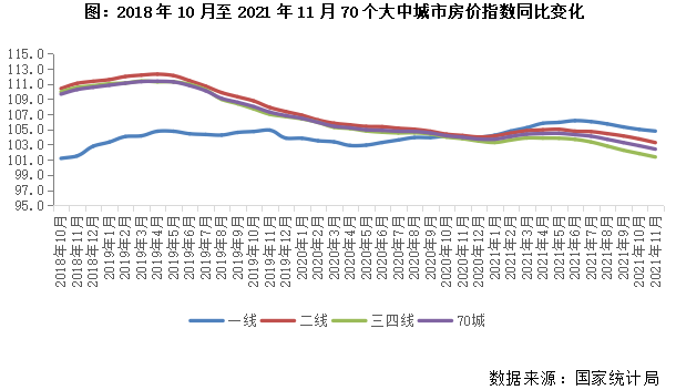 從國家統計局公布的70個大中城市房價指數同比月度變化規律來看,四季度全國房價的平均同比增速水平持續回調走勢。至11月末同比漲幅已收窄至2.4%,二季度以來中央針對樓市調控持續加碼,“信貸升級”、“三價就低”、“購房積分制”等調控政策綿密展開,自三季度起房價普遍呈回落態勢,疊加前期透支的市場購買力逐步降級,樓市熱度持續轉冷。