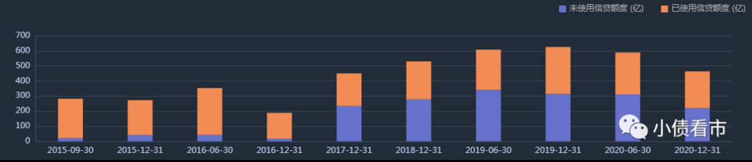 在備用資金方面,截至2020年末協(xié)信遠創(chuàng)授信總額為463.99億元,未使用授信額度220.12億元,表面看財務(wù)彈性尚可。