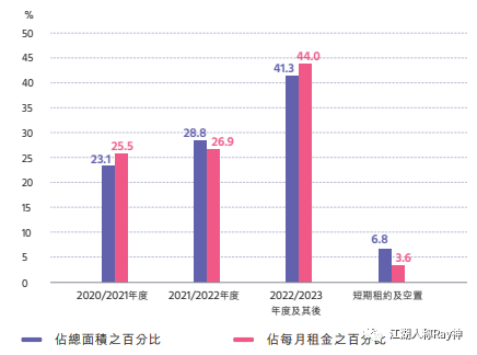 確切地說,租約到期分布其實不能算是一項指標,而是一組統計數據。它用于分析在未來不同時間區間到期的合約對整體項目造成的影響程度,以評價項目經營持續性的風險。