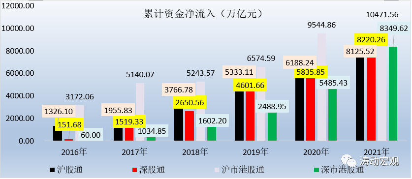 3、北向通累計資金凈流入分別達(dá)到1.63萬億,全年流入首次超過南向通