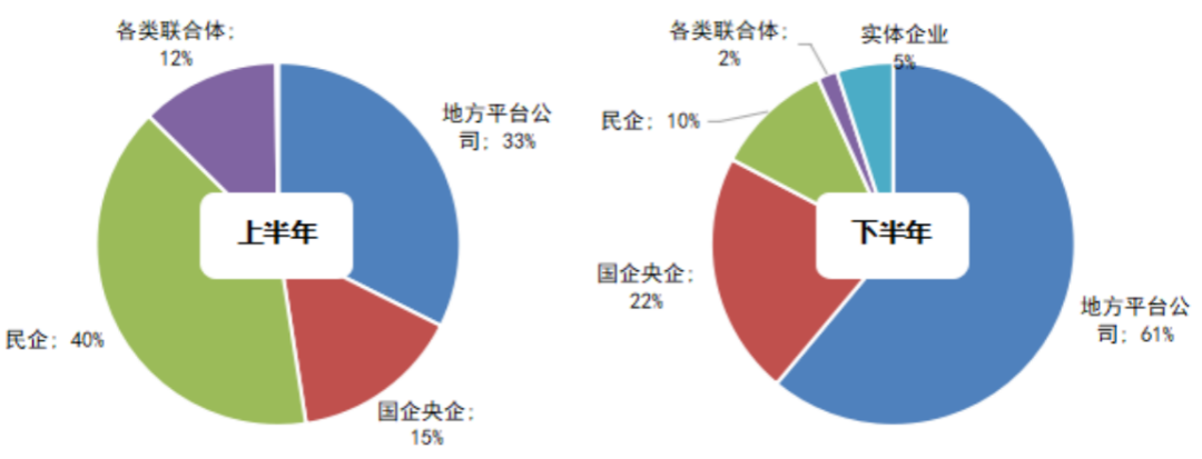 進(jìn)入下半年以后,民企投資態(tài)度發(fā)生大幅轉(zhuǎn)變,拿地不再積極競(jìng)拍至需要競(jìng)配建的輪次,因此新增租賃用地建面大幅下降,占比下滑至10%;反之國(guó)企央企、地方平臺(tái)公司新增租賃用地的比例大幅提升,國(guó)企央企提升至22%,地方平臺(tái)公司更是提升至61%,成為各地新建租賃用房的主力。