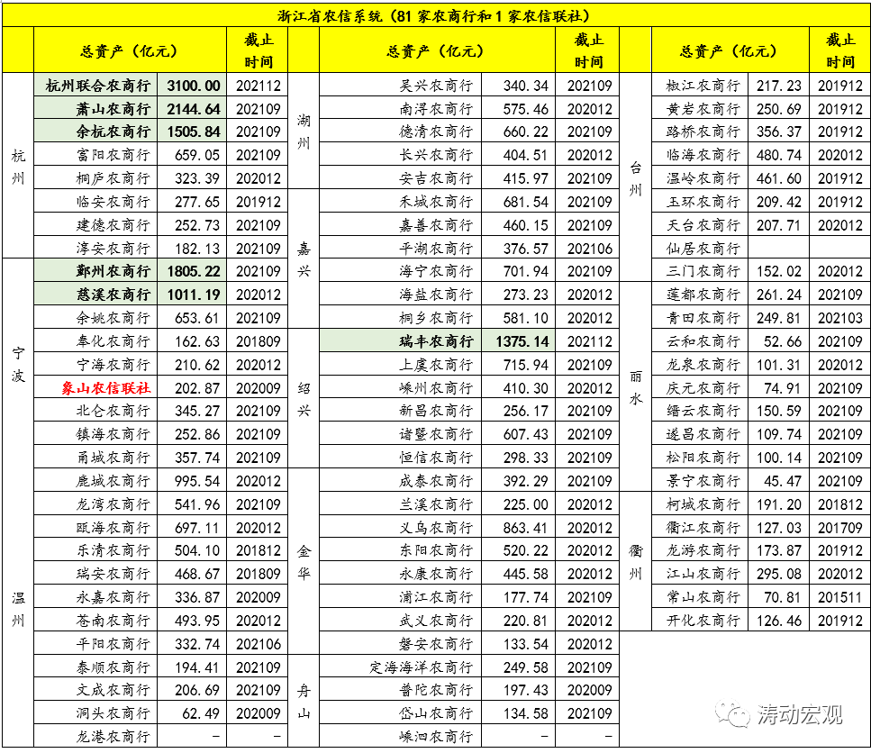 (三)浙江農商聯合銀行包含82家成員(6家成員總資產超1000億元)