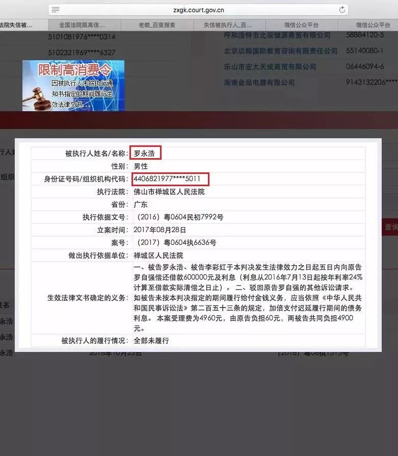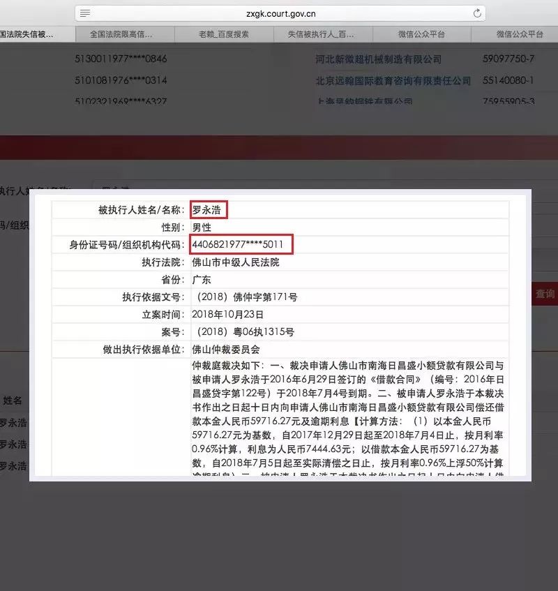 三條信息的案號與上文的1977年生的羅永浩為同一人。