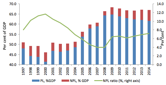 不良貸款的增加是金融危機的一個顯著特征。最近的全球經歷衰退也不例外——僅在歐盟內部,2009年至2014年期間,不良貸款占GDP的比例就增加了一倍以上。發展中國家市場現在也面臨著類似的困難。根據世界銀行的數據顯示,2015年26個國家的不良貸款率(不良貸款率)超過了10%。