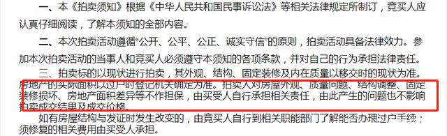 通俗地來(lái)說(shuō),法院的意思就是,“我只負(fù)責(zé)拍賣,房子有什么問(wèn)題你要自己看清楚,住進(jìn)去是啥樣就是啥樣,出了問(wèn)題自己負(fù)責(zé),考慮不好就別拍,概不退貨。”
