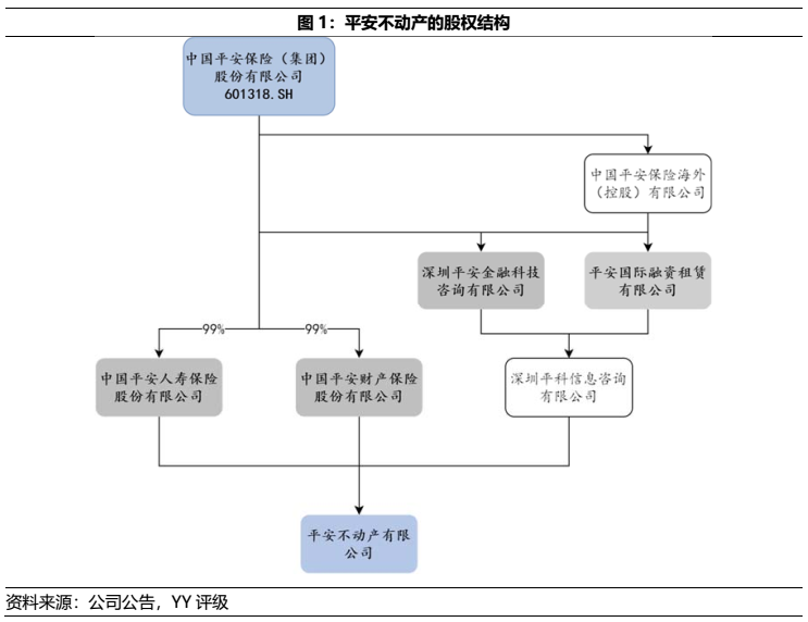 平安不動產有限公司由平安系相關企業100%控股,分別被平安人壽、平安財險、平安科技和平安融資租賃等公司持股。作為中國平安的不動產投資運營平臺,平安不動產的主要業務是基于搭建平安系的不動產投資基金管理業務而設。