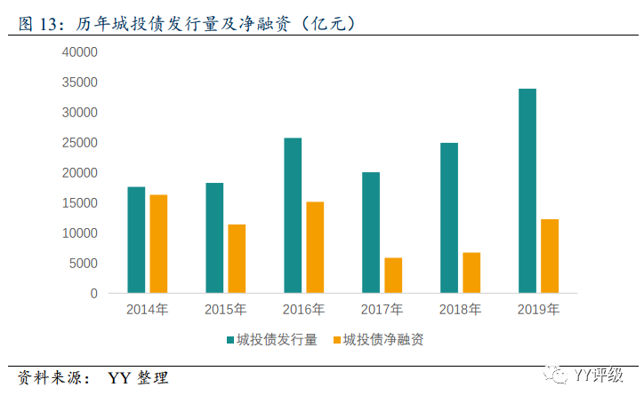 距離2027年地方政府隱性債務化解的最后期限尚有較長時間,這中間依然還有城投持續融資并完成置換的余地。預計2020年城投債發行規模還會繼續上升,但是2020年到期城投債規模預計也將在2019年的基礎上繼續增長,根據中證鵬元的測算,達2.5萬億元左右。因此2020年城投債本身借新還舊壓力較大,凈融資額的增長有限。有效投放可能勉為其難。
