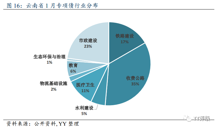 作為配套資金支持,云南省于1月6日發行了10筆專項債,共計450億元,涉及收費公路、鐵路建設、市政建設、醫療衛生等領域,其中投向基建的比例超過80%。
