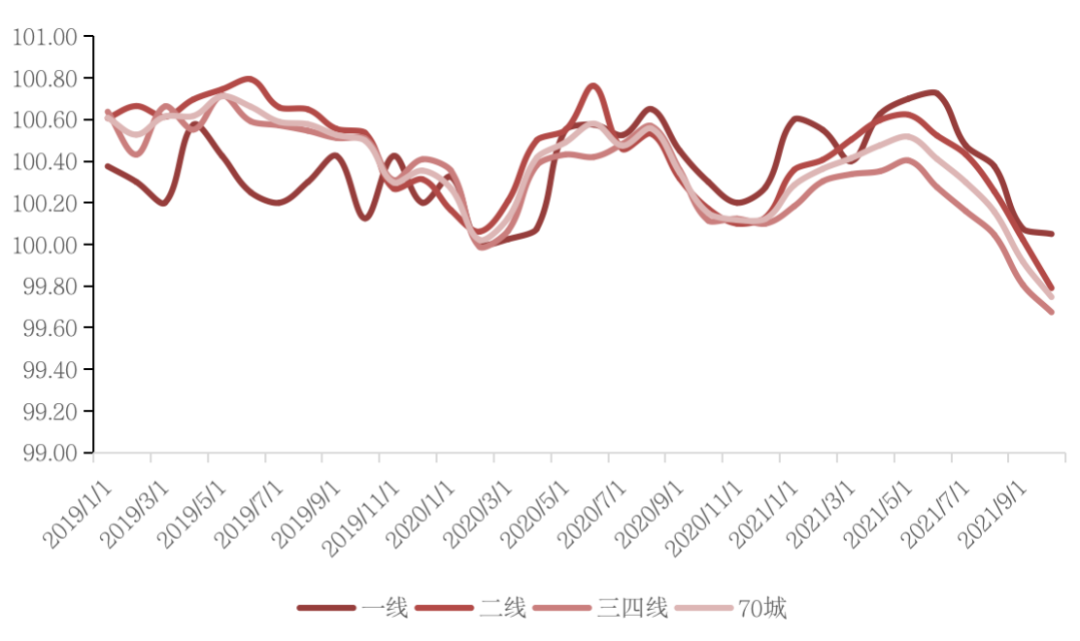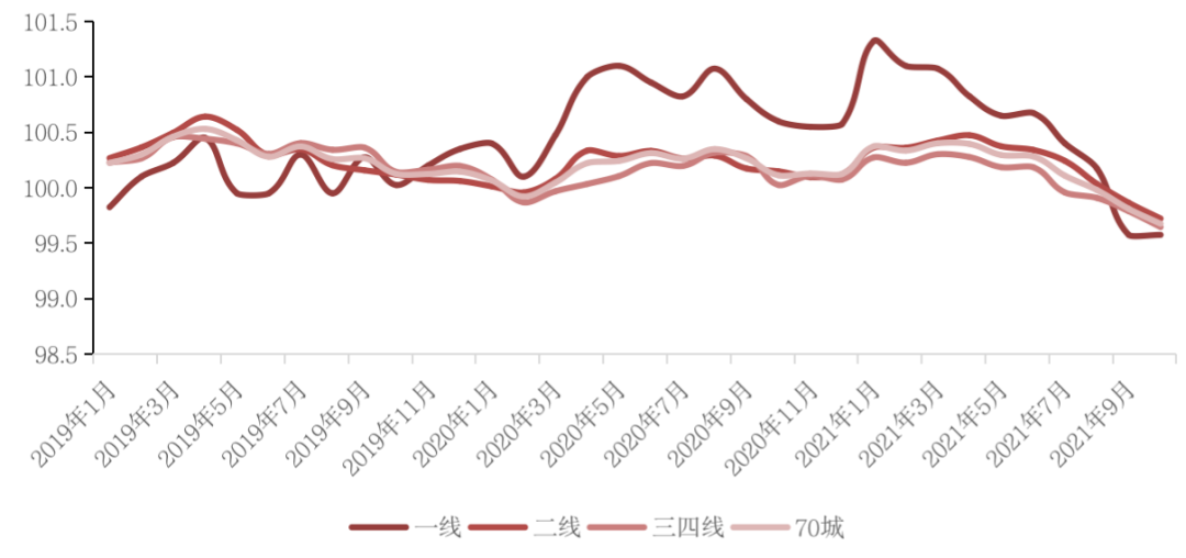 國家統計局數據顯示,2021年10月,70個大中城市商品住宅銷售價格環比總體延續略降態勢,同比漲幅繼續回落。