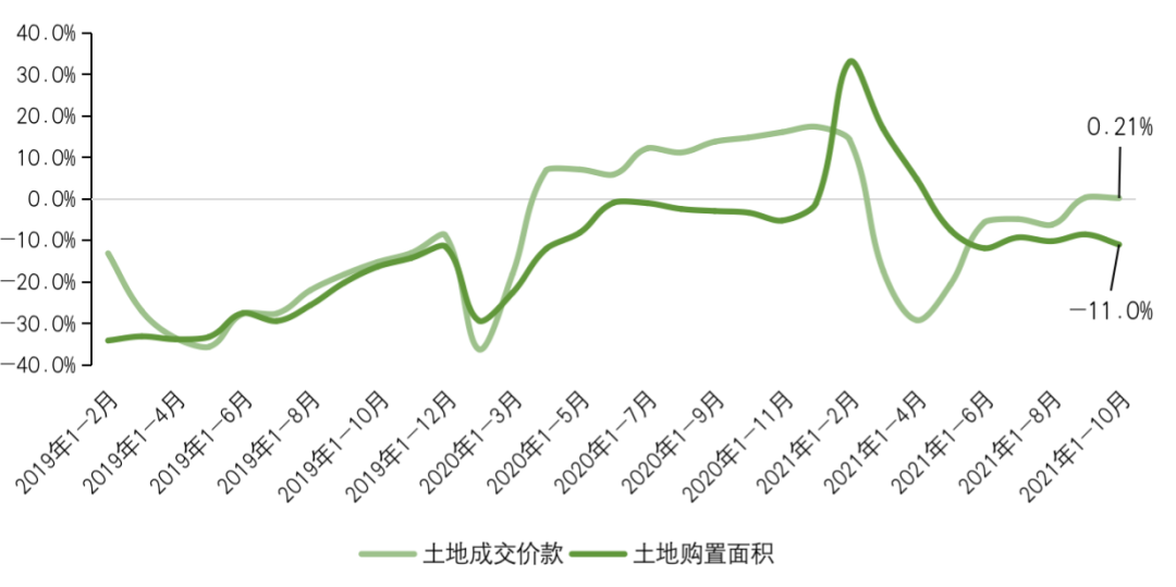 國家統計局數據顯示,前10月房地產開發企業土地購置面積15824萬平方米,同比下降11.0%,降幅較1-9月擴大2.4pct;土地成交價款11410億元,增長0.2%,增幅較1-9月微收0.1pct。