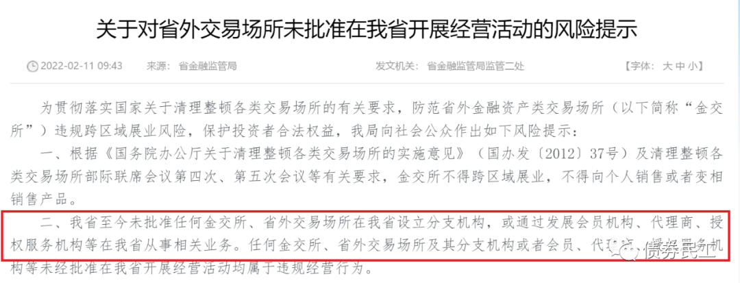 2、2022年2月9日,浙江省寧波市地方金融監督管理局公告,針對金融資產類交易場所,“至今未批準任何市外交易場所在我市設立分支機構,或通過發展會員機構、代理商、授權服務機構等在我市從事相關業務。”如果不能進行異地展業,對于金交所各類的產品來說,影響還是非常大的。