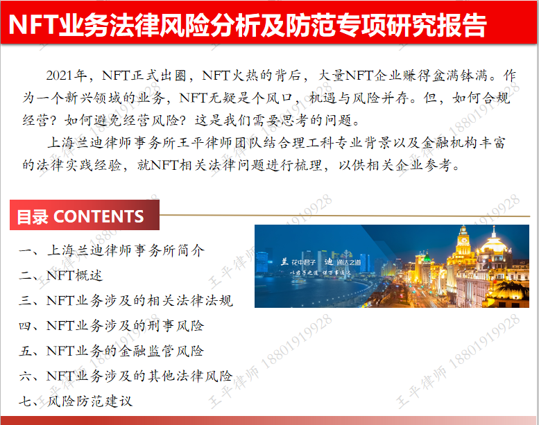 上海蘭迪律師事務(wù)所王平律師團(tuán)隊(duì)結(jié)合理工科專(zhuān)業(yè)背景以及金融機(jī)構(gòu)豐富的法律實(shí)踐經(jīng)驗(yàn),就NFT相關(guān)法律問(wèn)題進(jìn)行梳理,以供相關(guān)企業(yè)參考。