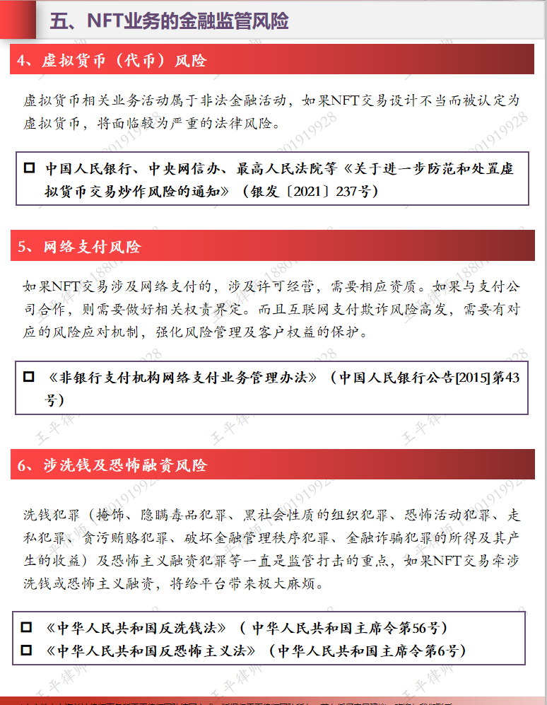 作為一個(gè)新興事物,法律規(guī)定尚屬于空白狀態(tài),我們?cè)趧?chuàng)新的同時(shí),更需要關(guān)注法律風(fēng)險(xiǎn),尤其是可能觸及的金融風(fēng)險(xiǎn)。金融風(fēng)險(xiǎn)帶來(lái)的后果可能包括刑事犯罪(如非法經(jīng)營(yíng)罪、非法吸收公眾存款罪、集資詐騙罪、洗錢(qián)罪及幫助恐怖活動(dòng)罪、賭博罪、組織、領(lǐng)導(dǎo)傳銷(xiāo)活動(dòng)罪等),行政處罰(如違反交易所管理的規(guī)定、期貨衍生品管理、證券發(fā)行、虛擬貨幣等)。因此,法律風(fēng)險(xiǎn)防范至關(guān)重要。