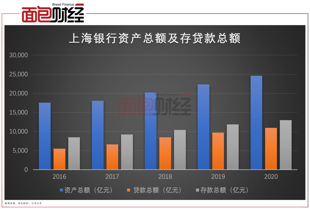 截至2020年末,上海銀行的總資產(chǎn)達(dá)2.46萬億,較上年末增長2250.62億元,增幅達(dá)10.06%。其中貸款總額的增長是導(dǎo)致資產(chǎn)規(guī)模增長的主要原因。報告期末,該行客戶貸款和墊款總額為10981.24億元,較上年末增長12.92%。