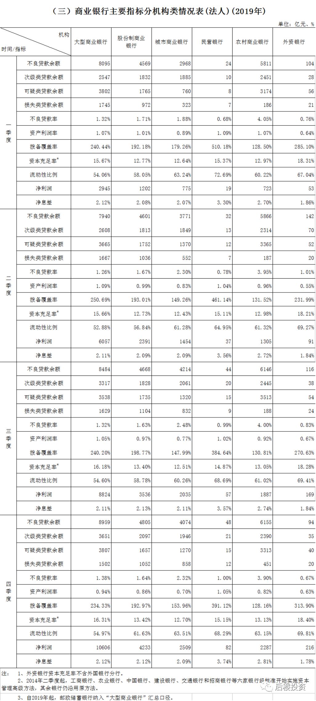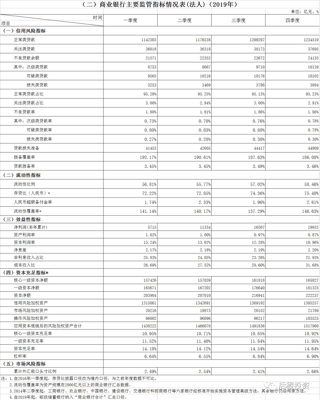 本月,銀保監會公布了2019年四季度銀行業主要監管指標。